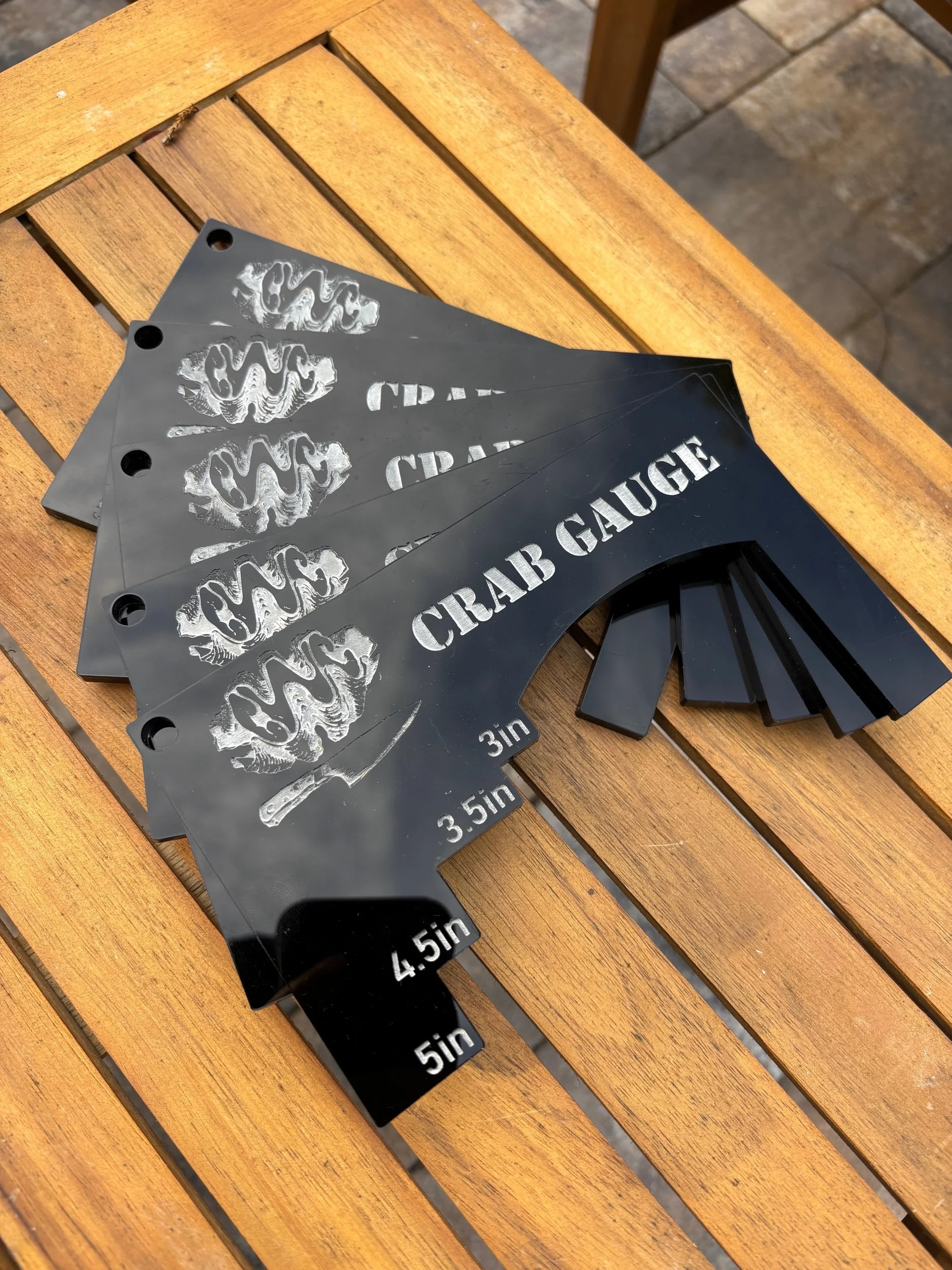 Handheld easy to measure crab gauge. Measures peeler and softshell ( 3”, 3.5” ) New York State (4.5”), and south of New York. (5”)